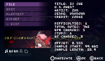 - Chart Editor: Complete editor similar to Arrow Vortex, export in StepMania format