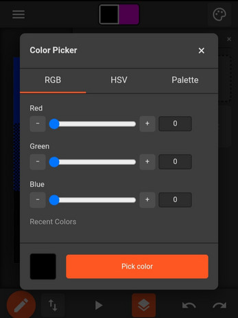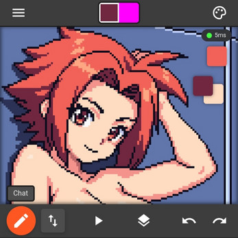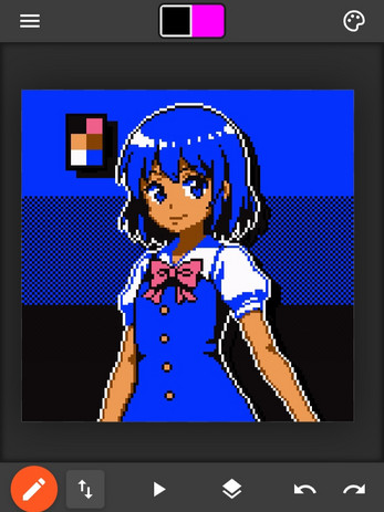 Pencil, eraser, bucket fill, line, rectangle, ellipse, and pipette. Adjust brush size, toggle symmetry, and customize your color palette. Everything behaves as you'd expect—no surprises.